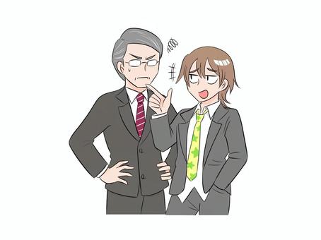 仕事の説明されるも終始ポケットに手を突っ込んだままで顎を突き出す