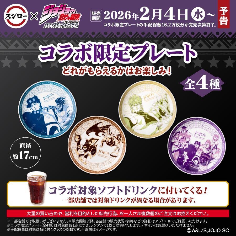 回転寿司チェーン・スシローの公式Xが28日に更新され、人気アニメ『ジョジョの奇妙な冒険 スターダストクルセイダース』とのコラボを発表した。