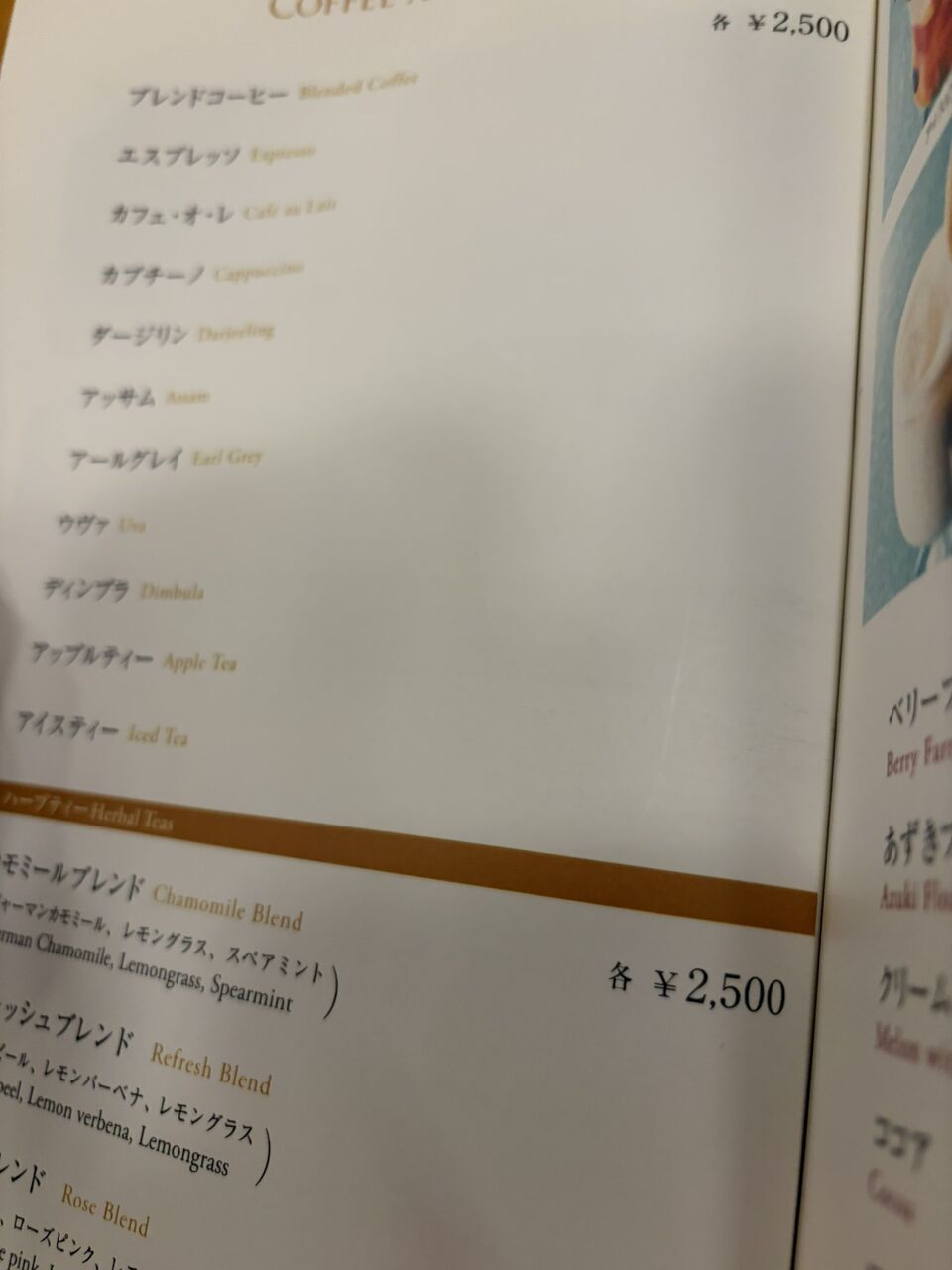 そこにはブレンドコーヒー、エスプレッソ、カフェ・オ・レ、カプチーノ……などとドリンクメニューが並んでいるが、値段は「各¥2,500」と記されていた。
