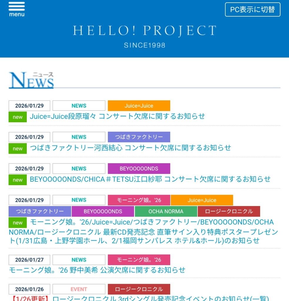 ハロー!プロジェクトの公式サイトが29日に更新され、Juice=Juice段原瑠々(24)、つばきファクトリー河西結心(22)、BEYOOOOON…