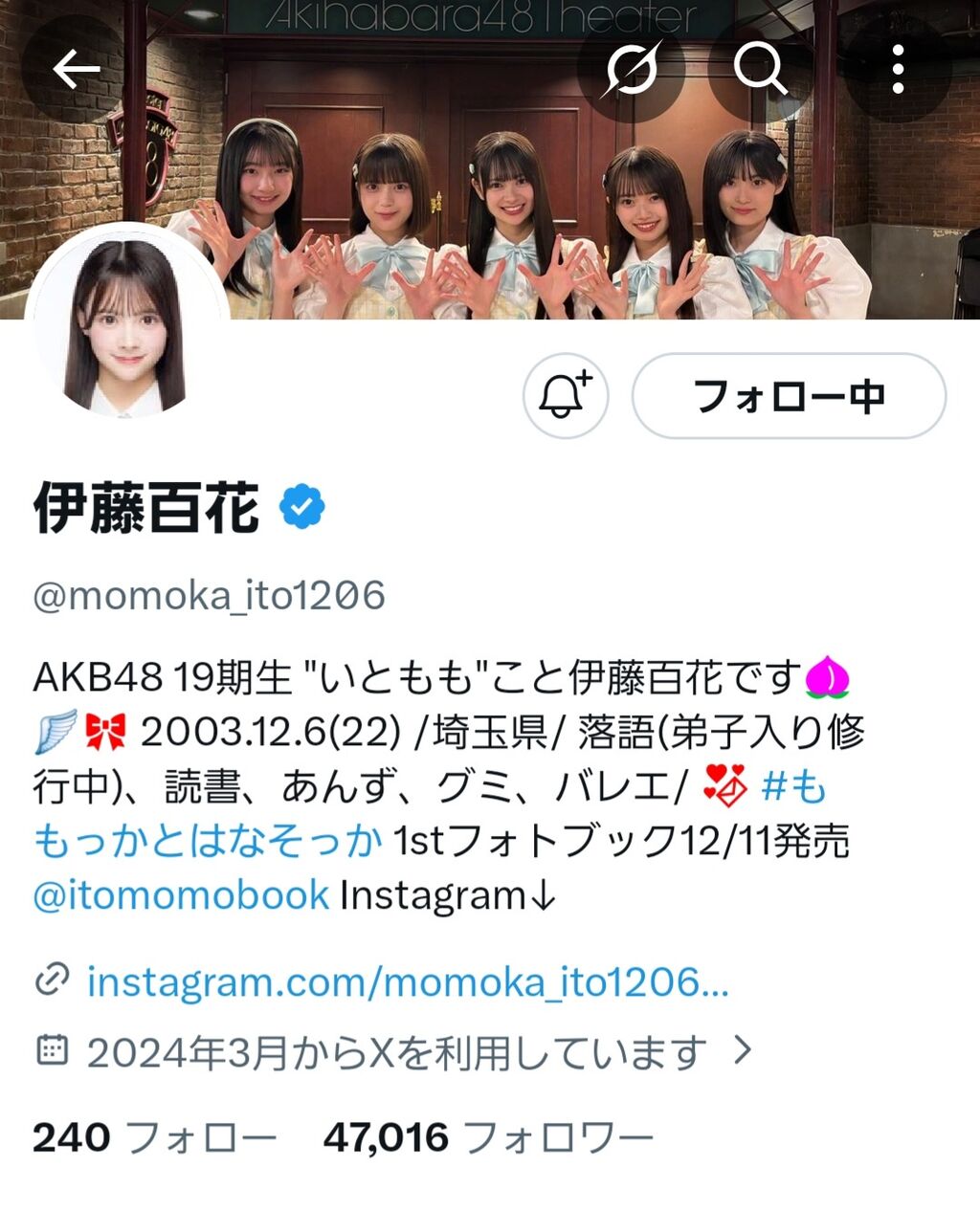 伊藤百花さん、Xフォロワーが47000人突破おめでとうございます!