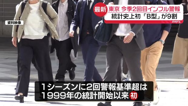 東京で1シーズンに2度目の警報が出るのは初めてのことで、その背景には非常に高い感染力を持つB型インフルエンザが影響していると考えられます。