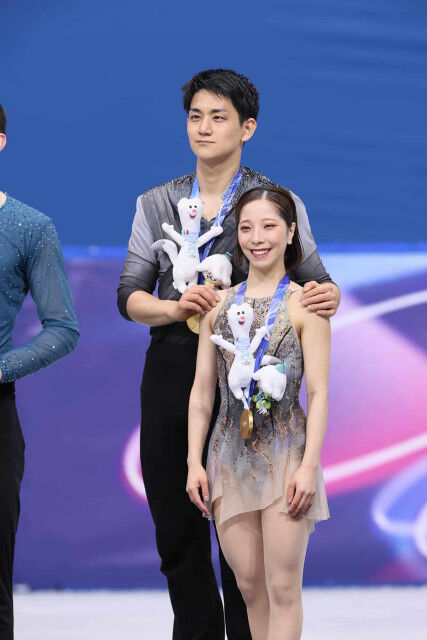 2人がフリーで演じたのは「グラディエーター」。前日のSPで失敗したリフトも問題なくこなし、木原は力強く三浦を高々と持ち上げた。本来のりくりゅうらしい美しさ溢れる演技で観客を魅了すると、フリー歴代最高得点を記録。ペアでは日本初となる金メダル獲得に、2人の目にはうれし涙が溢れた。