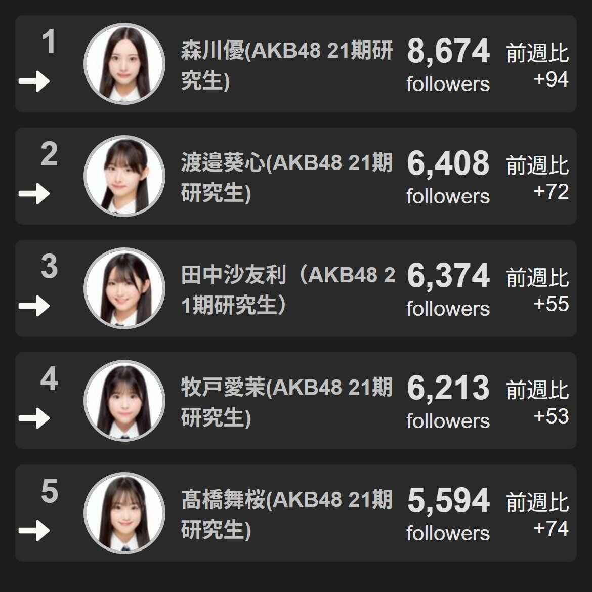 AKB21期生の森川優さんが、フォロワー数であの人気を誇る他のアイドルたちを抑え堂々の1位に輝きました!