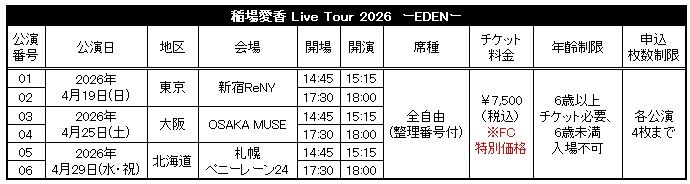 稲場愛香の新しいライブツアー『EDEN』の開催が決定しました!